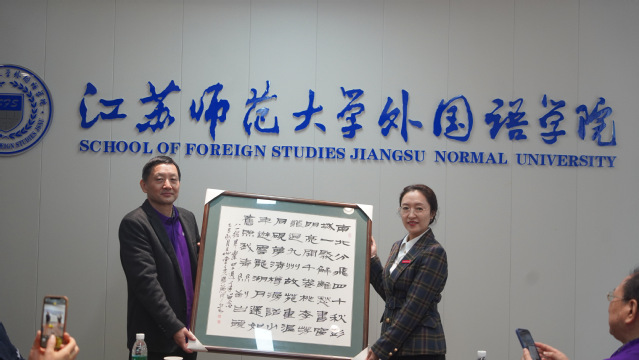 李洪涛教授现场表演了诗歌朗诵,将现场氛围推向高潮。1985届校友代表向学院捐赠书法作品,王淑文代表学院接收捐赠,为校友颁发捐赠证书并赠送纪念品。