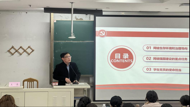 专题讲座中,王展书记以“勇于担负起网络强国建设的历史使命”为主题,从基础支撑、融合应用、安全发展三个层面系统解读了网络强国战略的核心架构,强调其关乎国家安全、发展全局与人民福祉,并提出三大担当:一是在网络交往中主导思想政治引领,二是争当网络安全防护先锋,三是主创优质思政文化产品。结合《黑神话:悟空》等案例,王书记鼓励学员们发挥专业优势,积极投身网络强国建设,以高校学子的责任担当为战略实施贡献青春力量。