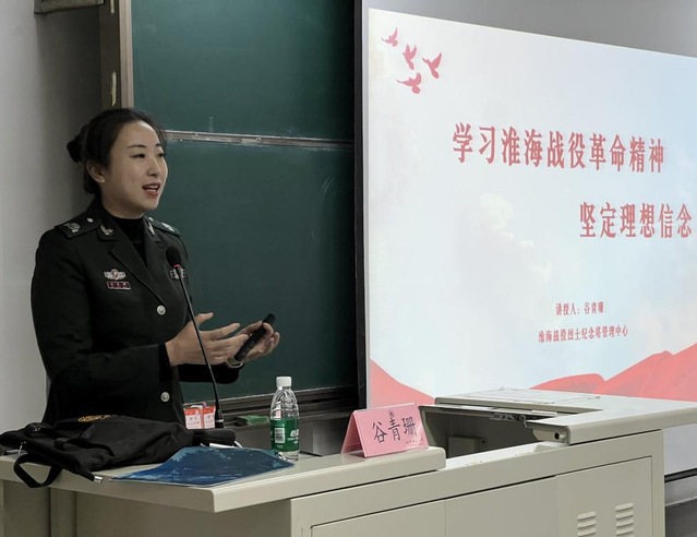 本期党课还特别邀请了淮海战役纪念馆讲解班班长谷青珊。谷老师从淮海战役为什么胜为切入点,解析淮海战役胜利的重要因素,解锁胜利进程,深刻阐释淮海战役的十六字革命精神及蕴含的优良作风,以史为鉴、以精神铸魂,筑牢信仰之基,激发奋进之力,为实现个人价值与时代使命提供坚实的思想支撑。课程内容丰富详实,有战斗实例、英雄故事、亲历者回忆、人民支前影像等,引导学员从革命先辈的奋斗历程中汲取力量,坚定理想信念,强化使命担当,为新时代的奋斗注入精神动力。