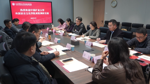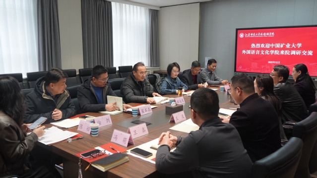 王淑文代表学院对中国矿业大学外国语言文化学院调研团队的到访表示热烈欢迎。她指出,两个学院一直有着良好的合作基础,希望以此次调研为纽带,共享实践经验、共解发展难题。院长于涛围绕学科优化调整、专业建设与“挑战杯”赛事组织工作展开详细分享,并结合“十五五”规划编制,提出了进一步强化学科特色、拓展合作领域的思路举措。