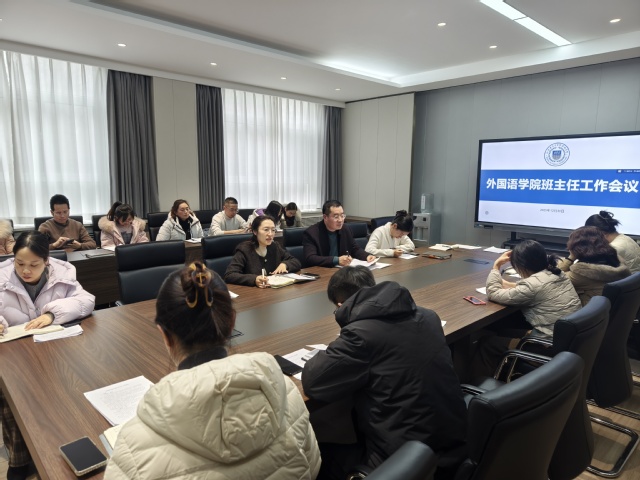 12月31日下午,外国语学院召开班主任工作会议,院党委书记王淑文、全体辅导员和班主任参加,会议由党委副书记王波主持。